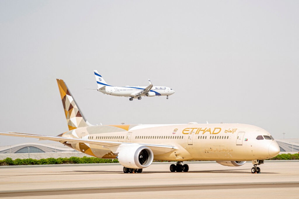 The Israeli flag carrier El Al’s airliner approaches to land at Abu Dhabi International Airport, United Arab Emirates August 31, 2020. Ministry of Presidential Affairs/WAM/Handout via REUTERS. ATTENTION EDITORS – THIS IMAGE WAS PROVIDED BY A THIRD PARTY./File Photo Acquire Licensing Rights