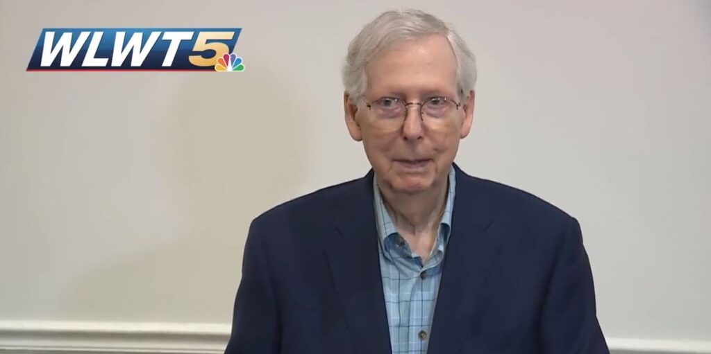 McConnell, however, did not answer despite a nearby aide loudly repeating the question. The aide told reporters, “I’m sorry, you all. We’re gonna need a minute,” as a person who appeared to be a member of McConnell’s security detail approached the senator and mumbled something into a microphone.
