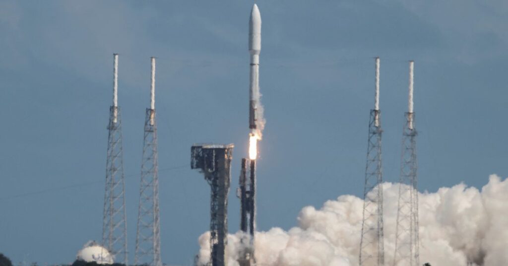 A United Launch Alliance Atlas 5 rocket emblazoned with the Amazon logo lifted off from Cape Canaveral shortly after 2 p.m. Eastern time (1800 GMT), carrying the two Kuiper test satellites, a long-awaited mission Amazon initially had intended to launch using different rockets.
