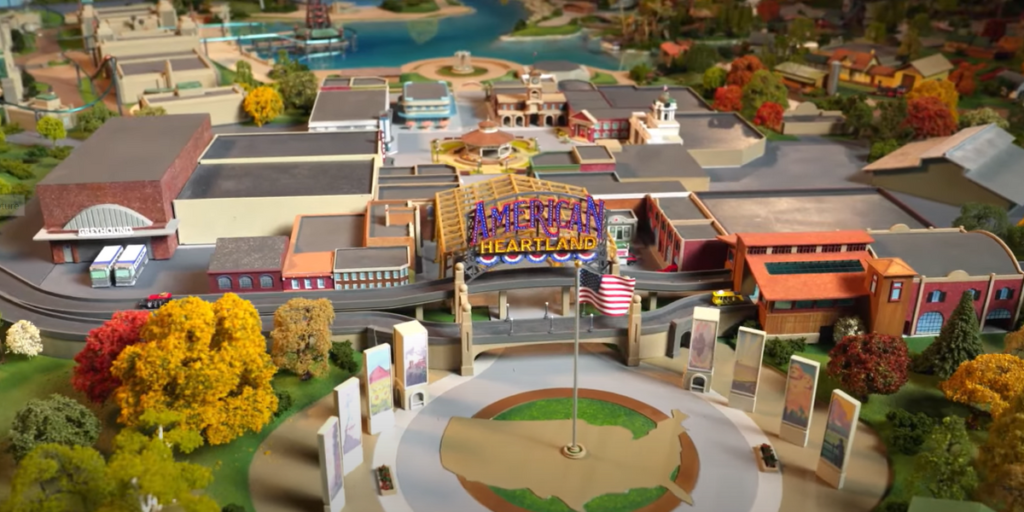 “The 1,000-acre development will feature the 125-acre American Heartland theme park, which is comparable to the size of Magic Kingdom Theme Park and Disneyland Park,” the press release reads. “The park will feature an Americana-themed environment with a variety of entertaining rides, live shows, family attractions, waterways as well as restaurant-quality food and beverage offerings. The theme park and resort are scheduled to open in fall of 2026.”