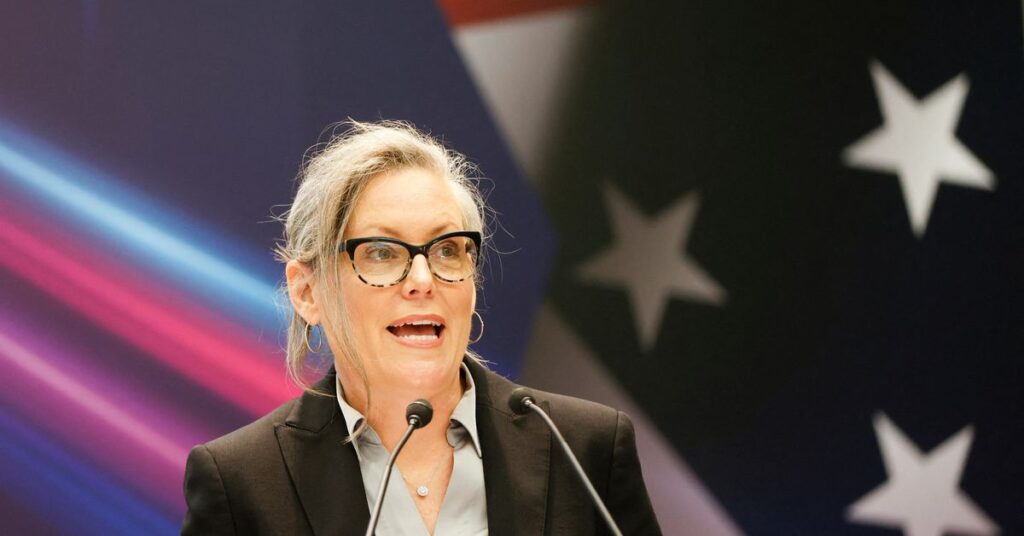 [1/6]Katie Hobbs, Governor of the U.S. state of Arizona, speaks during the 2023 U.S. Business Day and Taiwan-U.S. Supply Chain Partnership Forum in Taipei, Taiwan September 19, 2023. REUTERS/Carlos Garcia Rawlins Acquire Licensing Rights