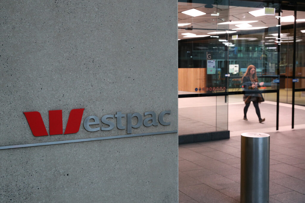 A woman exits the ground floor of an office building with Westpac logo amidst the easing of the coronavirus disease (COVID-19) restrictions in the Central Business District of Sydney, Australia, June 3, 2020. REUTERS/Loren Elliott Acquire Licensing Rights