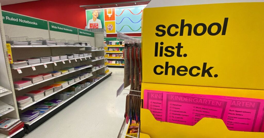 [1/2]Back to school supplies are shown for sale at a Target store in Encinitas, California, U.S., July 28, 2020. REUTERS/Mike Blake/File Photo Acquire Licensing Rights