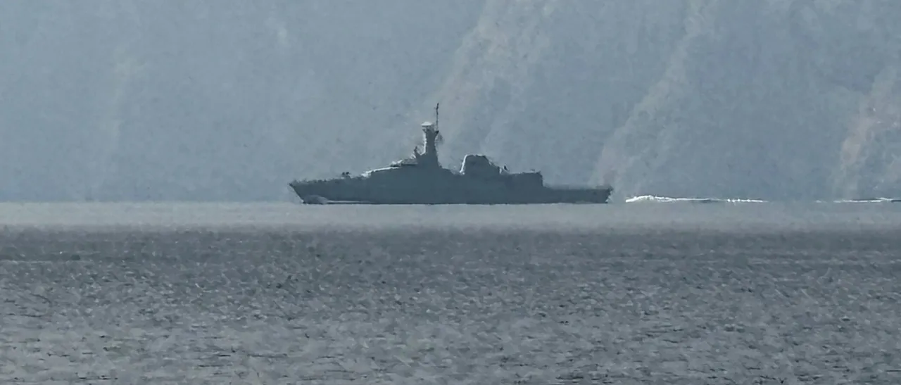 A navy vessel is seen sailing in the Strait of Hormuz, a vital waterway through which much of the world’s oil and gas passes on March 1, 2026. (Photo by Sahar AL ATTAR / AFP via Getty Images)