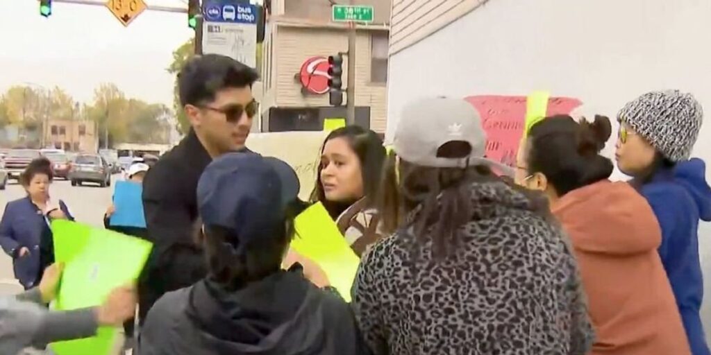 News video from WBBM-TV showed Ald. Julia Ramirez be surrounded by protesters who press their protest signs against her. An aide protected her from protesters before police were able to arrive to escort the official away from the scene.