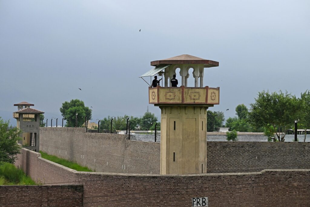 Policemen stand guard at the Attock prison post where Pakistan’s former Prime Minister Imran Khan is being held for three years in Attock on August 6, 2023. (Photo by Aamir QURESHI / AFP) (Photo by AAMIR QURESHI/AFP via Getty Images)