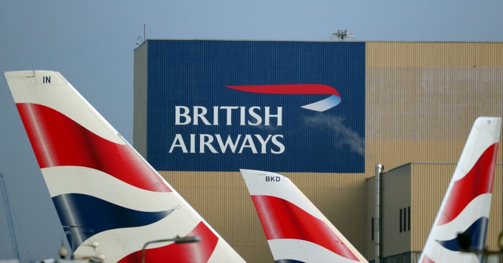 [1/2]British Airways logos are seen on tail fins at Heathrow Airport in west London, Britain, February 23, 2018. REUTERS/Hannah McKay