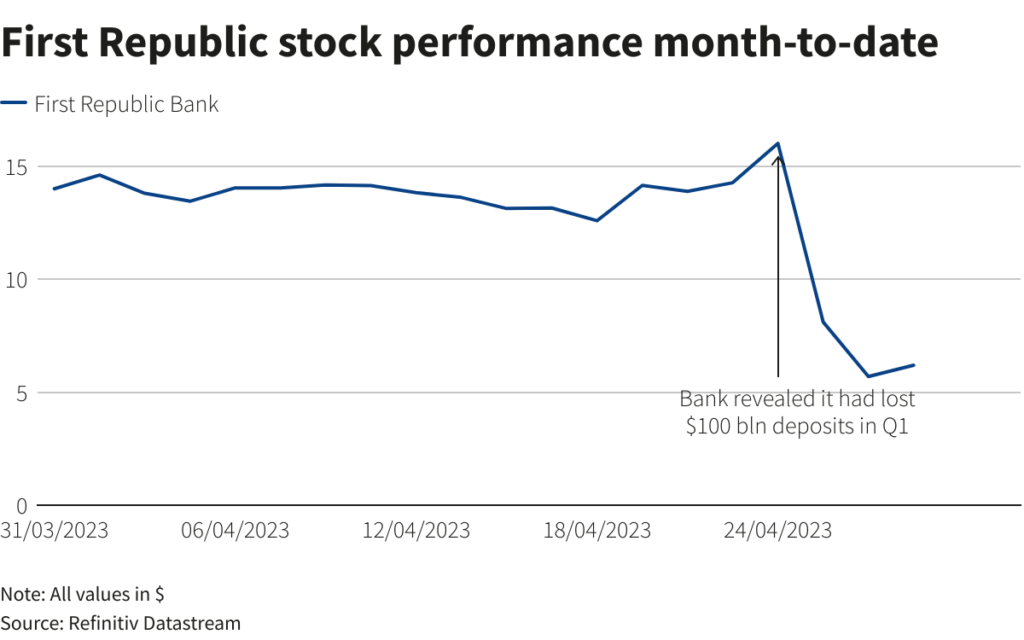 If the San Francisco-based lender falls into receivership, it would be the third U.S. bank to collapse since March. First Republic said this week its deposits had slumped by more than $100 billion in the first quarter.