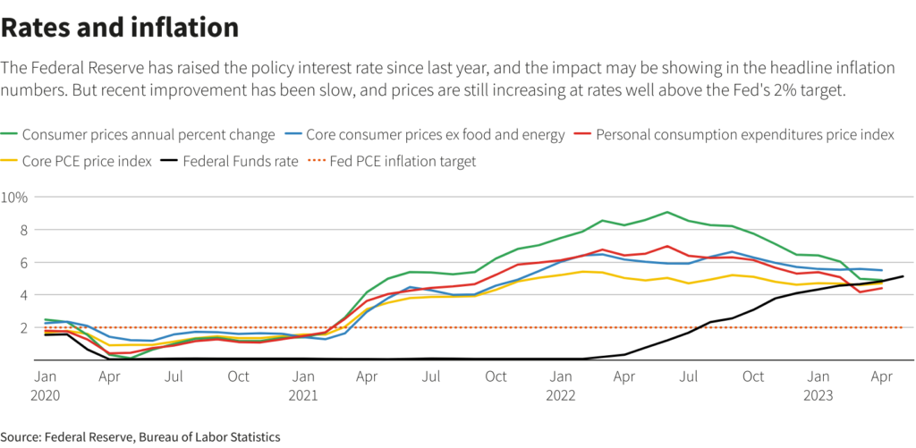 Economists, including veteran Fed watchers, are also divided between those who see inflation and the economy on the verge of a fast slowdown, those who see the central bank as still poised to hike given inflation’s persistence, and a few who see the Fed managing aptly towards a “soft landing” in which the economy and inflation slow without triggering a recession.