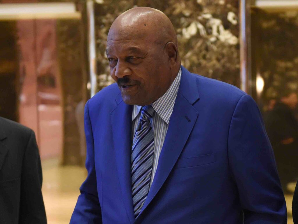 Football legend Jim Brown arrives at Trump Tower for meetings with President-elect Donald Trump on December 13, 2016 in New York. / AFP / TIMOTHY A. CLARY (Photo credit should read TIMOTHY A. CLARY/AFP via Getty Images)