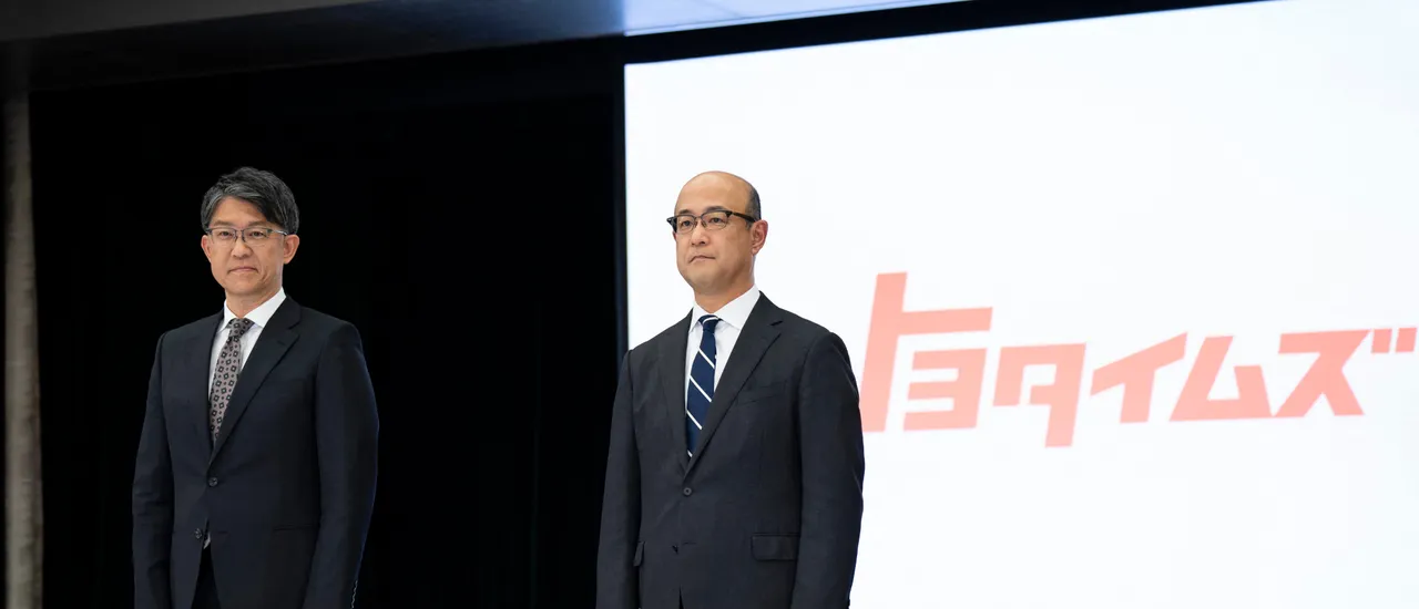 Toyota motor CEO Koji Sato (L) and Operating Officer and CEO-designate Kenta Kon attend a press conference in Tokyo on February 6, 2026. (Photo by Yuichi YAMAZAKI/AFP via Getty Images)