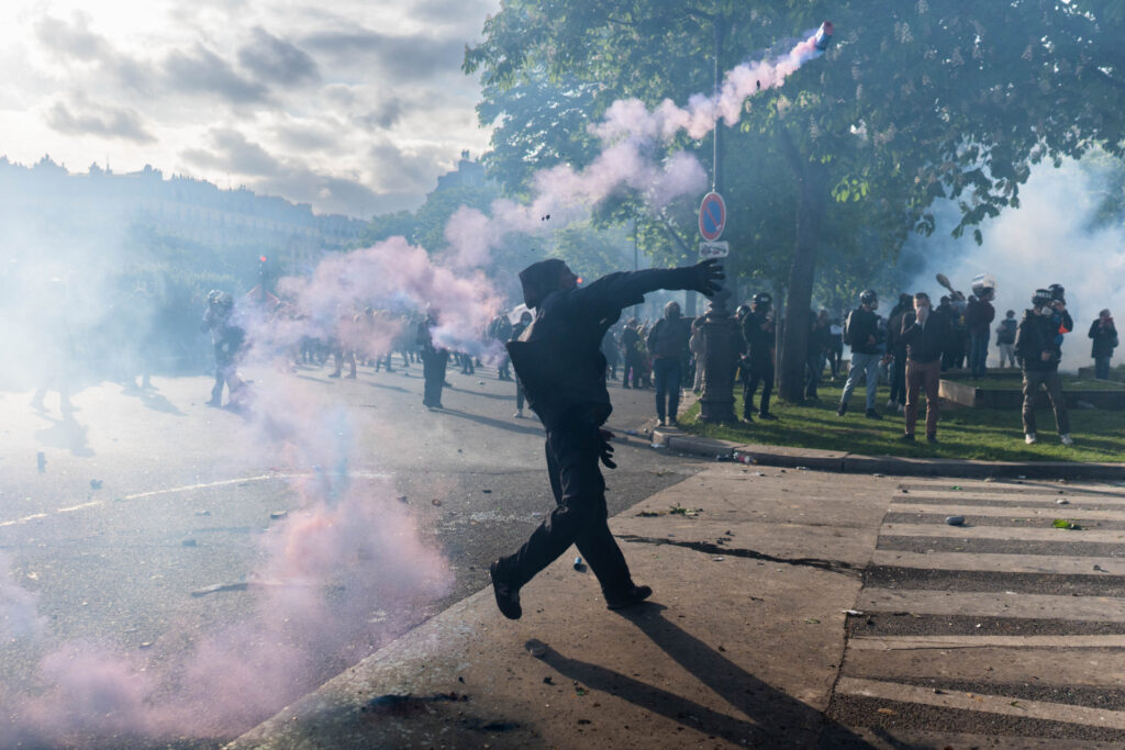 PARIS, FRANCE – MAY 1: Protests continue on Labour Day against the government’s pension reform in Paris, France on May 1, 2023. Photo by Firas Abdullah/Anadolu Agency via Getty Images)