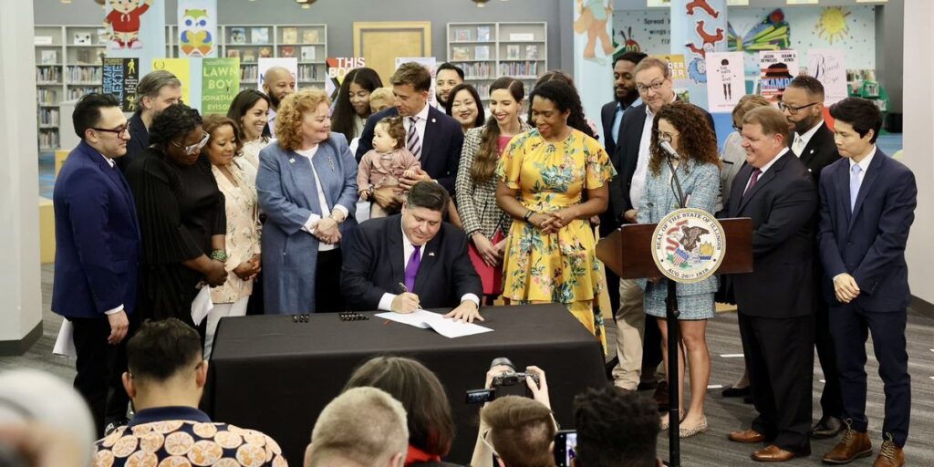 An official press release covering Pritzker’s signing of the bill took aim at Republicans in general and Florida’s Gov. Ron DeSantis, a Republican presidential contender, specifically.