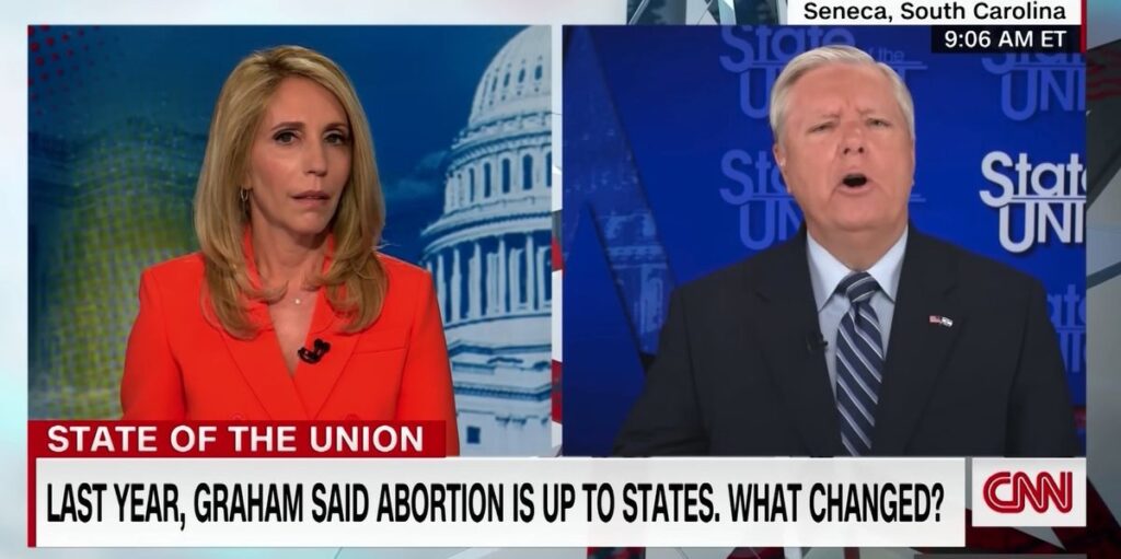While interviewing Graham on CNN’s “State of the Union,” Bash asked the South Carolina lawmaker whether abortion is an issue of state rights or whether the federal government should regulate it. He has advocated for both and most recently introduced a bill that would federally outlaw abortion after 15 weeks of gestation.