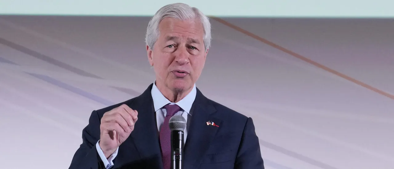 JPMorgan Chase CEO Jamie Dimon delivers a speech during the Global Markets Conference, ahead of the Choose France summit, in Paris, on May 15, 2025. The eighth edition of the Choose France summit, aimed at attracting major foreign investment to France, to be held in Versailles on May 19, is set to be “historic” once again, according to the Elysee Palace. (Photo by Michel Euler / POOL / AFP) (Photo by MICHEL EULER/POOL/AFP via Getty Images)