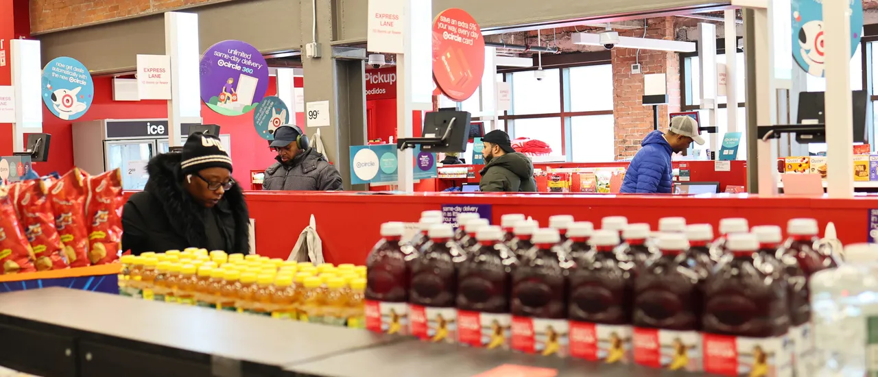 NEW YORK, NEW YORK – APRIL 02: People shop at a Target store on April 02, 2025 in the Flatbush neighborhood of the Brooklyn borough in New York City. Target stores continue to see a decline in sales for the eighth consecutive week, extending a streak that began after the company announced it would end its diversity, equity, and inclusion (DEI) program in late January. (Photo by Michael M. Santiago/Getty Images)