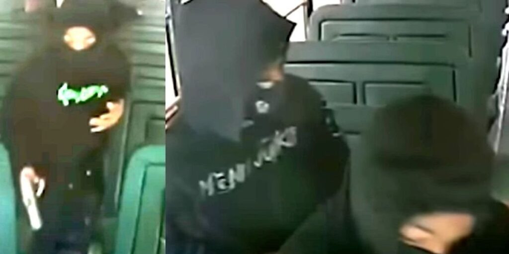 Three masked teens jumped on the bus after it made a stop and a girl got off, leaving a 14-year-old boy as the last passenger.