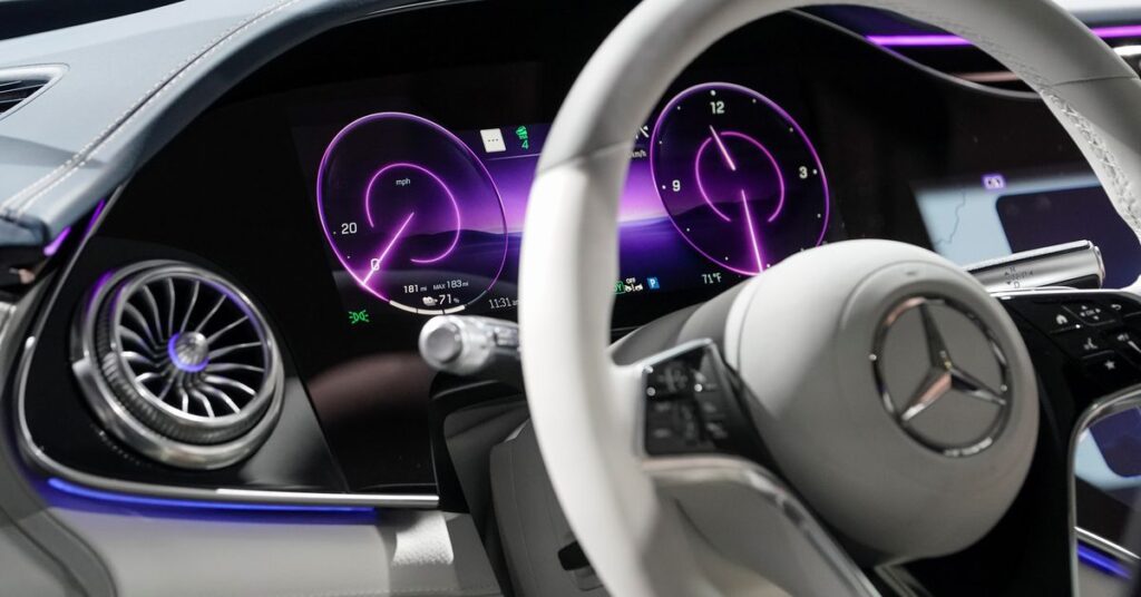 [1/2]The steering wheel and one of the digital dashboards of the all-electric Mercedes-Benz EQS SUV is seen at the opening of a Mercedes-Benz electric vehicle Battery Factory, marking one of only seven locations producing batteries for their fully electric Mercedes-EQ models, in Woodstock, Alabama, Acquire Licensing Rights
