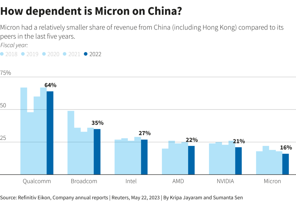 Micron Chief Financial Officer Mark Murphy said at a conference on Monday it was unclear what concerns Beijing had and direct and indirect sales to China-headquartered companies accounted for about a quarter of the chipmaker’s revenue.