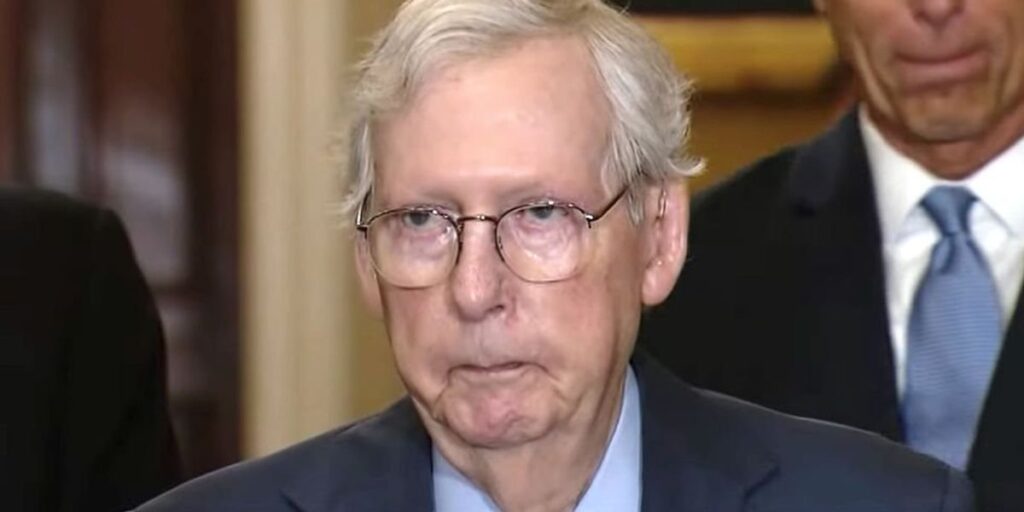 “After finishing the NDA, this week, in good bipartisan cooperation, in a string of—” said McConnell before freezing for several seconds.