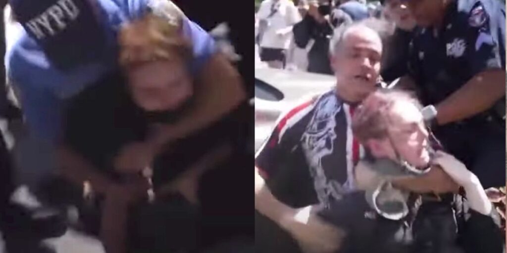 The New York Police Department said that a 32-year-old male was charged with assault and resisting arrest, a 31-year-old woman was charged with assault, and three others — ages 81, 80 and 69 years old — were charged with obstructing governmental administration and disorderly conduct.