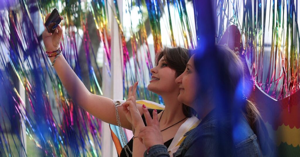 [1/8] People take selfie on the day of an annual LGBT Equality Parade in Warsaw, Poland June 17, 2023. REUTERS/Kacper Pempel