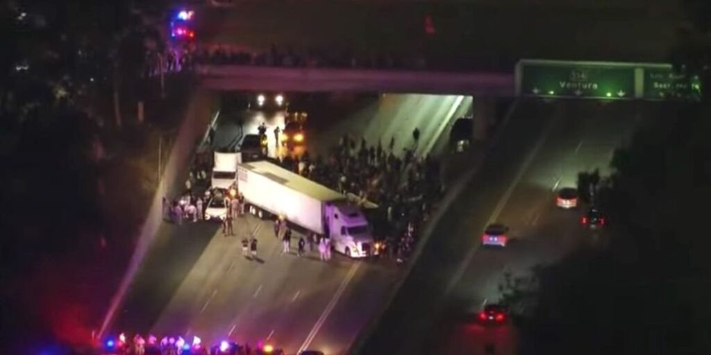 Protesters blocked off a major freeway in California with a semi-truck and other cars, causing a massive traffic backup in an attempt to pressure U.S. officials to intervene in a conflict involving Armenia.
