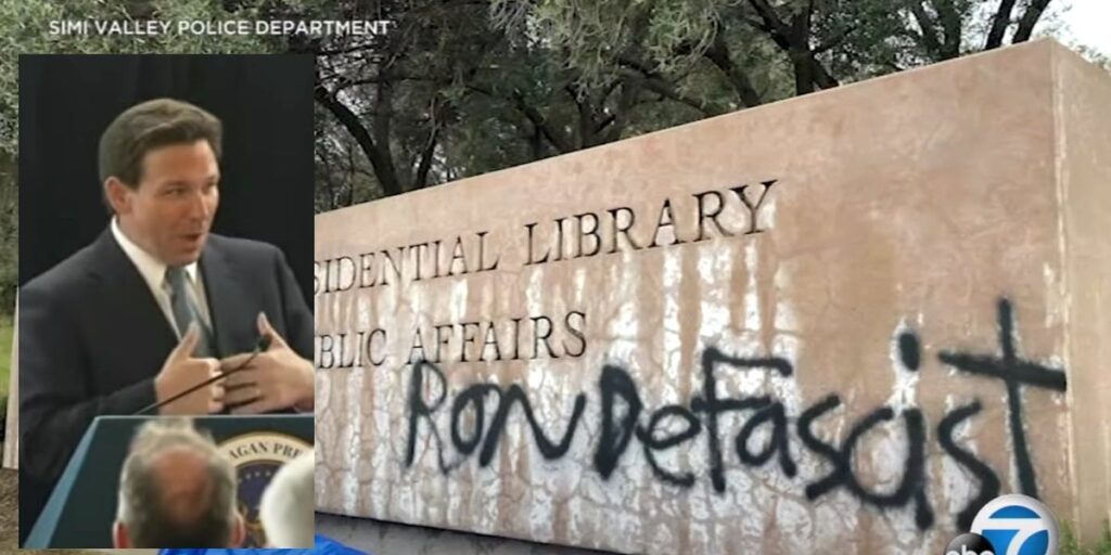Employees found the vandalism on the entrance sign to the presidential library at 7:30 a.m. on Sunday morning, just ahead of the popular governor’s visit, according to a report from KTLA-TV.