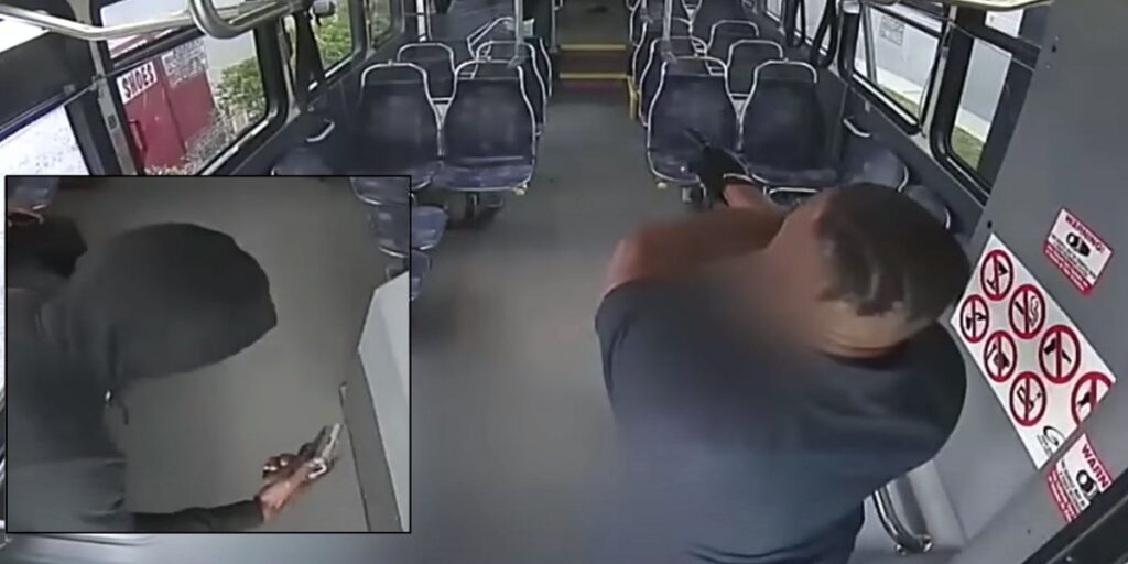 Transit authorities said a dispute over a missed stop on a bus led to a terrifying shootout between the driver and passenger and it was all captured on security video.