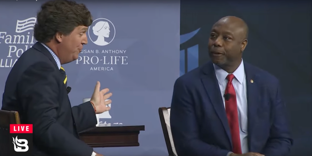 Tucker Carlson’s interview with South Carolina Senator Tim Scott (R) at the 2023 FAMiLY Leader Summit in Des Moines, Iowa, Friday started off the faith-based conference with a bang.