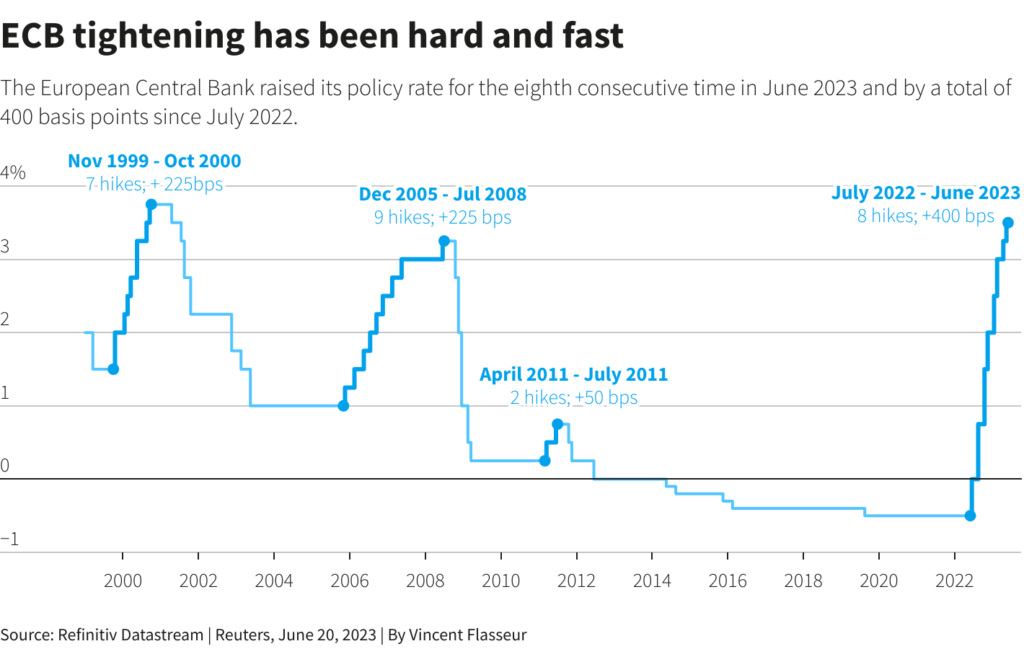 “I would be highly surprised if President (Christine) Lagarde says anything that brings market expectations much above 4%,” Eisenschmidt, said referring to the ECB’s maximum rate.