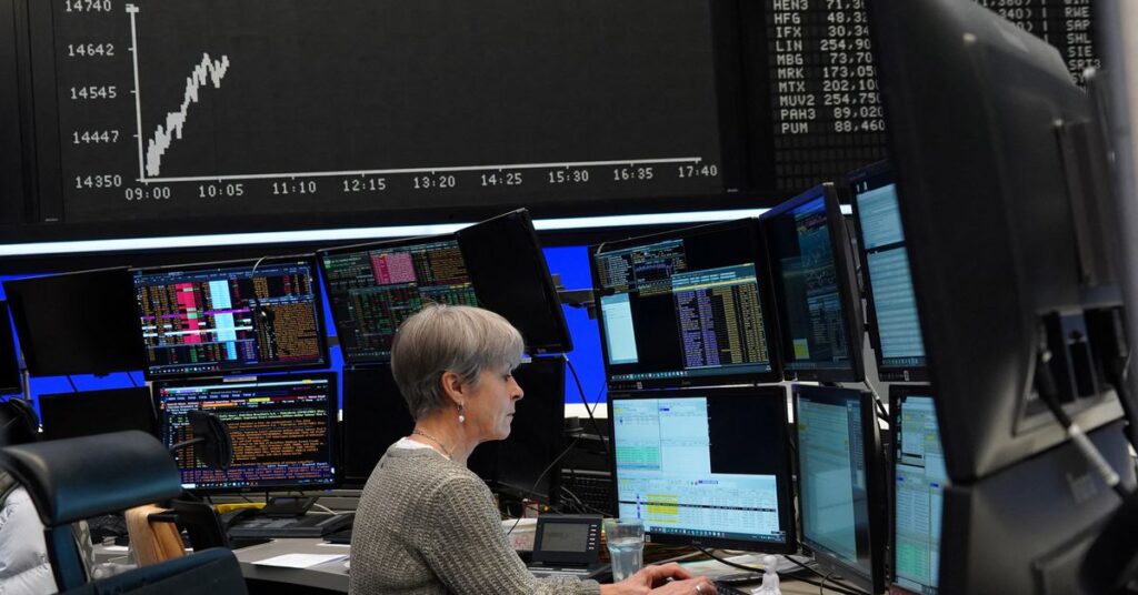 [1/2]A trader works at the Frankfurt stock exchange in Frankfurt, Germany, February 22, 2022. REUTERS/Timm Reichert/File Photo Acquire Licensing Rights