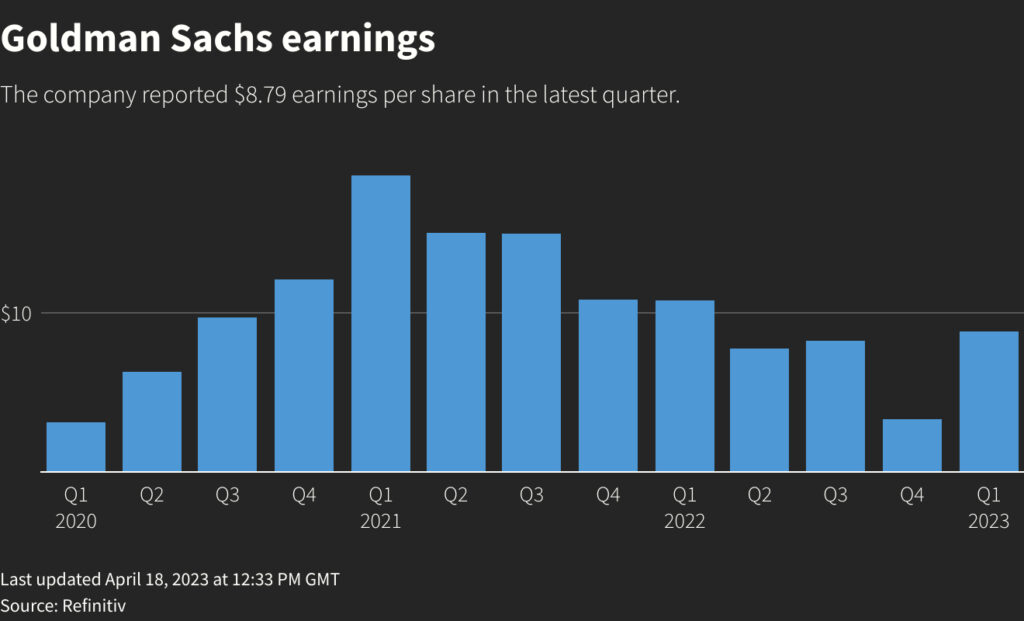 Goldman peer Bank of America (BAC.N) veered between gains and losses in choppy trading after its earnings beat estimates, and was last up 0.63%.