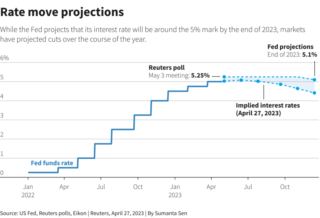 Futures markets show investors pricing an nearly 90% chance of a rate increase. But confidence in a 25 bps rate hike has wavered in recent days after problems at lender First Republic reignited concerns over the U.S. banking sector.