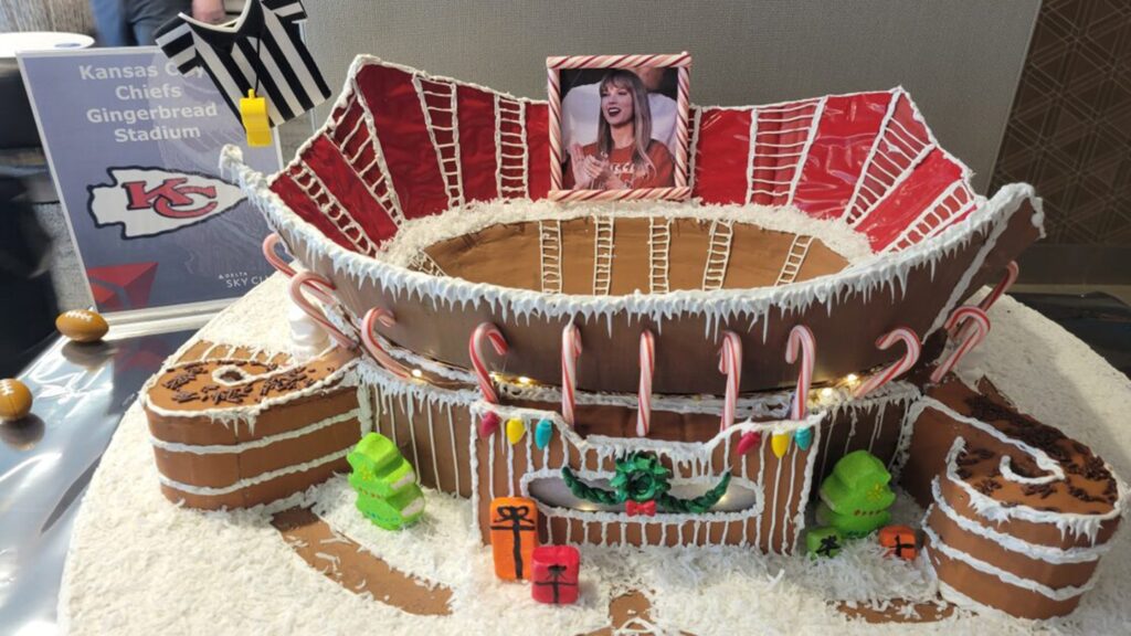 “The gingerbread Arrowhead Stadium, created by one of our managers, is beyond our ‘Wildest Dreams,’” said Delta Sky Club spokesperson Lea Huggins.