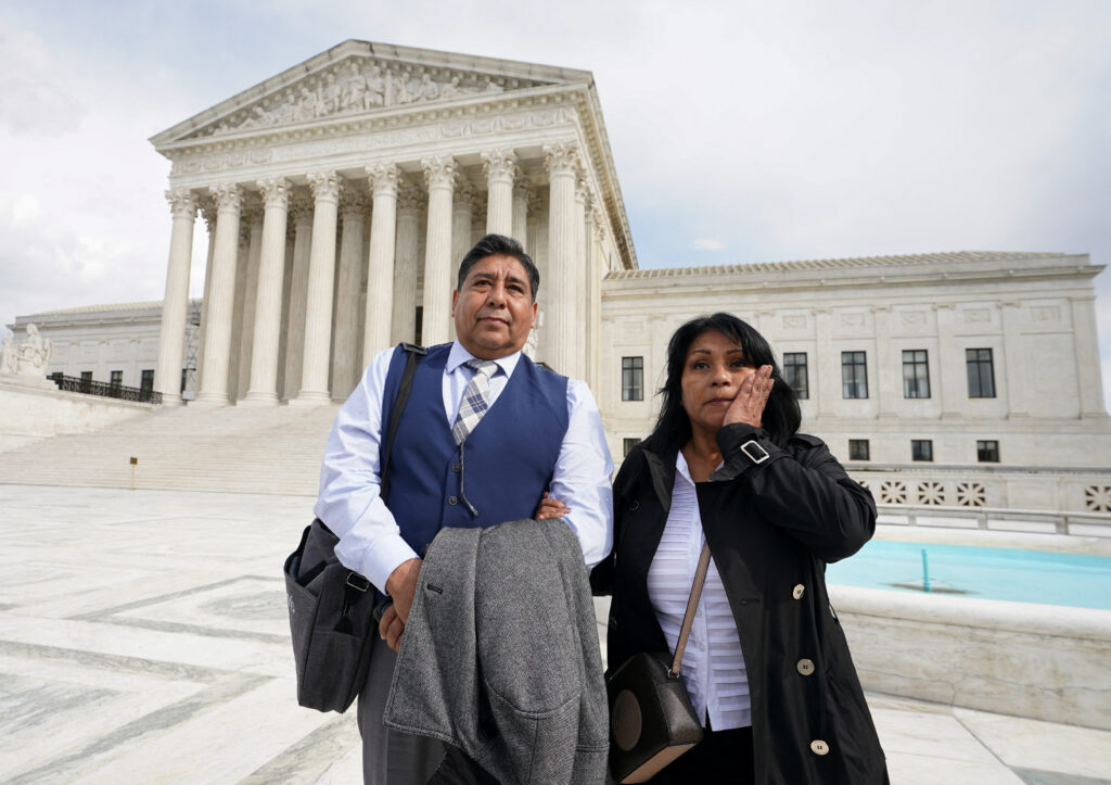 [1/5] Beatriz Gonzalez and Jose Hernandez, the mother and stepfather of Nohemi Gonzalez who was fatally shot in the 2015 Paris attacks, stand outside the U.S. Supreme Court after justices heard arguments in Gonzalez v. Google in Washington, U.S., February 21, 2023 REUTERS/Kevin Lamarque