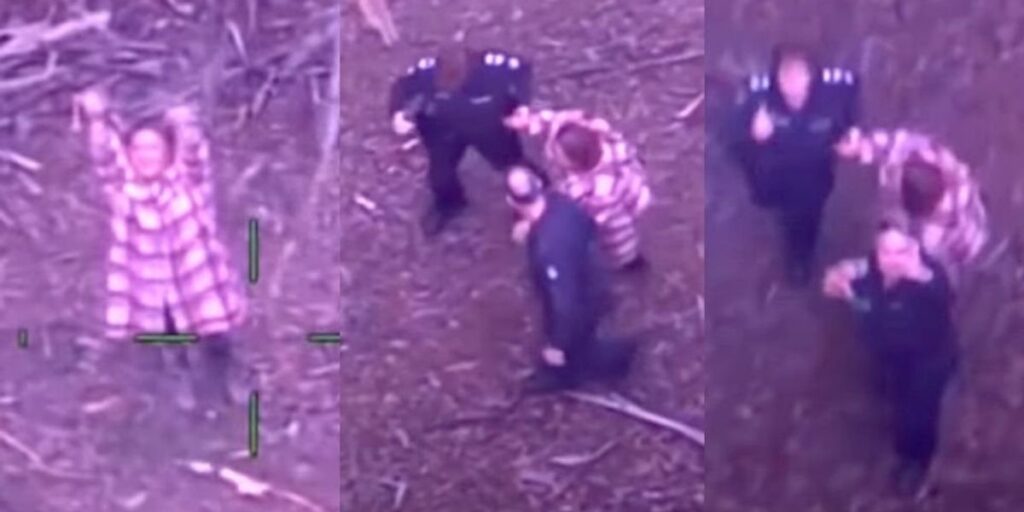 Dramatic video showed the moment that rescuers in Australia were able to find a woman who had been lost for several days in the bushland and had survived only on wine and lollipops.