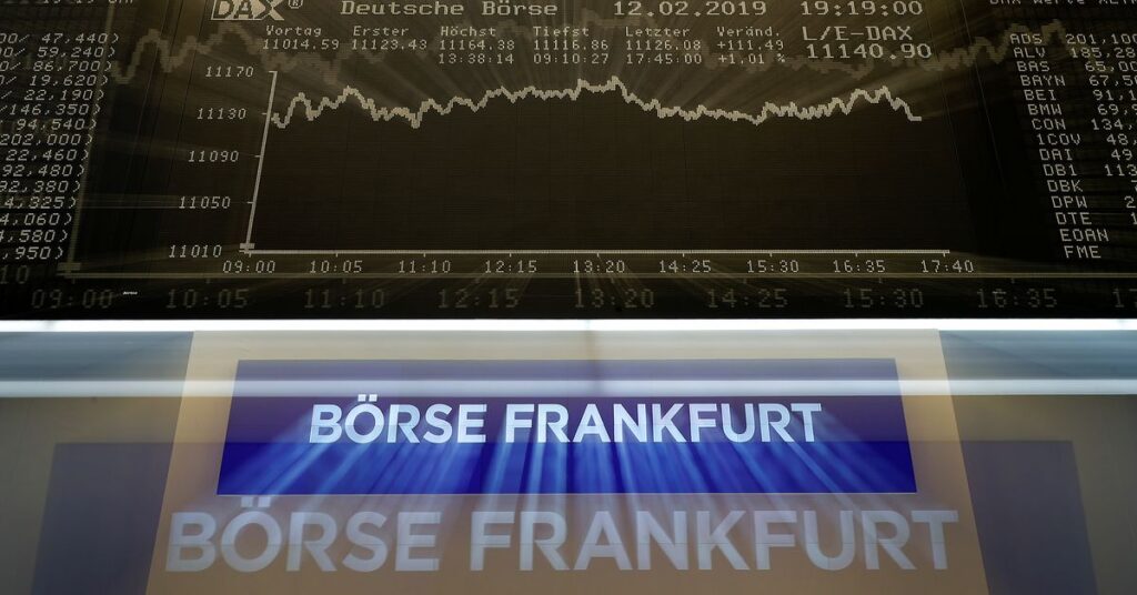 [1/2]The German share price index (DAX) board is seen at the end of a trading day at the German stock exchange (Deutsche Boerse) in Frankfurt, Germany, February 12, 2019. REUTERS/Kai Pfaffenbach/File Photo Acquire Licensing Rights