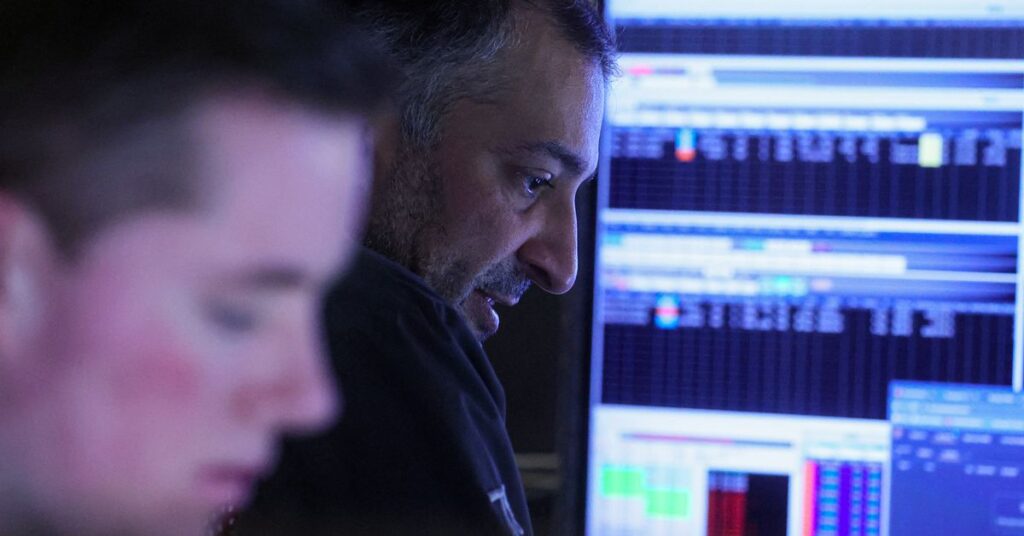 Five out of the top 11 S&P 500 sectors fell, with the rate-sensitive tech sector (.SPLRCT) dropping 1.7% to over a week’s low.