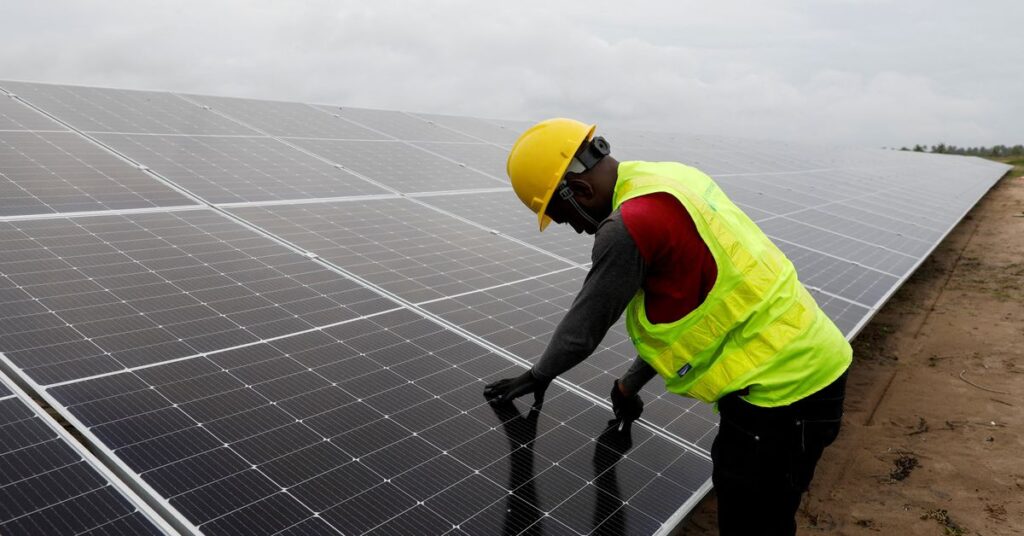 [1/2]A technician works on solar power panels at the Atlantic Shrimpers farm in Badagry, Lagos, Nigeria July 5, 2022. REUTERS/Temilade Adelaja/File Photo
